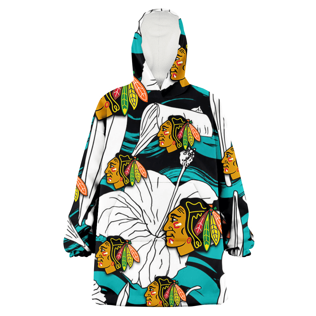 Chicago Blackhawks White Hibiscus Turquoise Stripe Background 3D Printed Hoodie Blanket Snug Hoodie