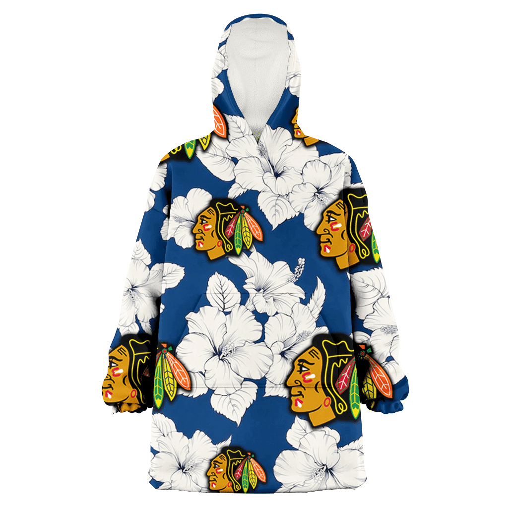 Chicago Blackhawks White Blue Hibiscus Blue Background 3D Printed Hoodie Blanket Snug Hoodie