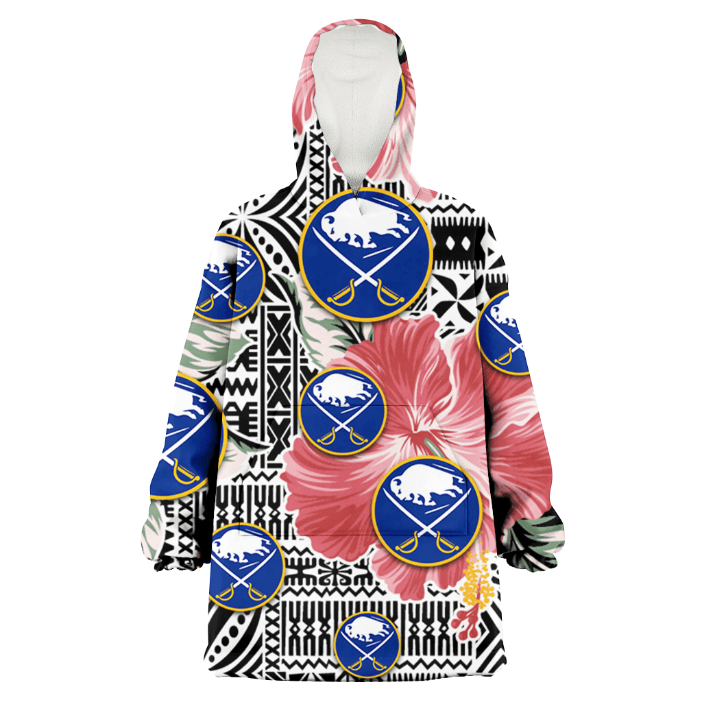 Buffalo Sabres Pink Hibiscus Black Pattern White Background 3D Printed Hoodie Blanket Snug Hoodie