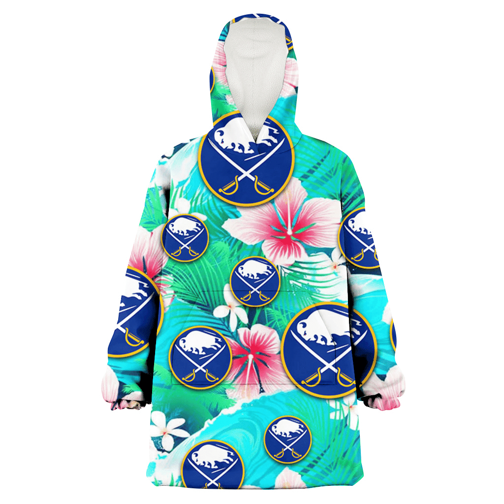 Buffalo Sabres Pink Hibiscus Green Leaf Blue Background 3D Printed Hoodie Blanket Snug Hoodie