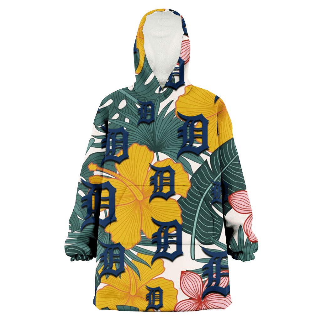 Detroit Tigers Yellow Hibiscus Cadet Blue Leaf Navy Background 3D Printed Hoodie Blanket Snug Hoodie