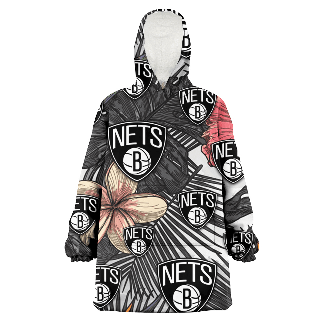 Brooklyn Nets Pink White Hibiscus Misty Rose Background 3D Printed Hoodie Blanket Snug Hoodie