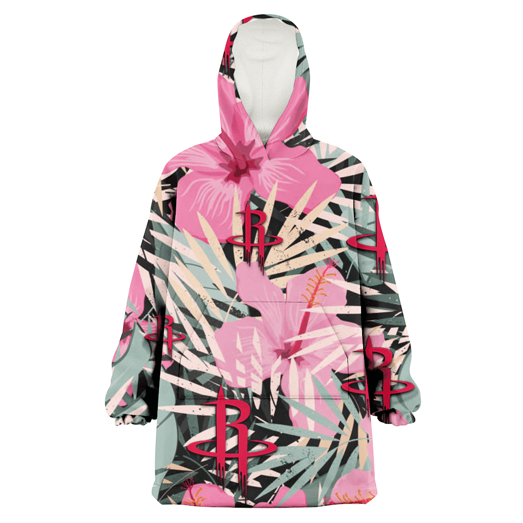 Houston Rockets Light Pink Hibiscus White Background 3D Printed Hoodie Blanket Snug Hoodie