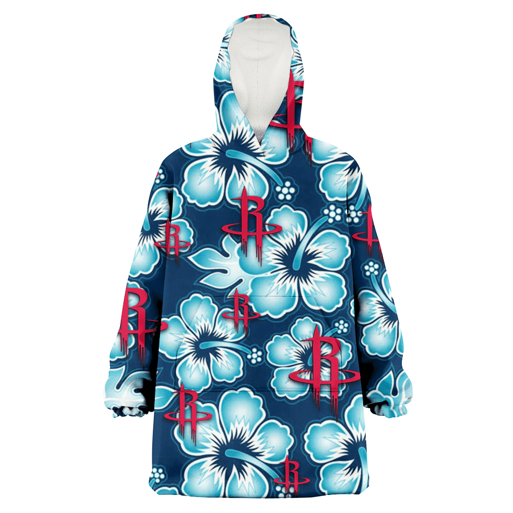Houston Rockets Light Blue Hibiscus Blue Background 3D Printed Hoodie Blanket Snug Hoodie