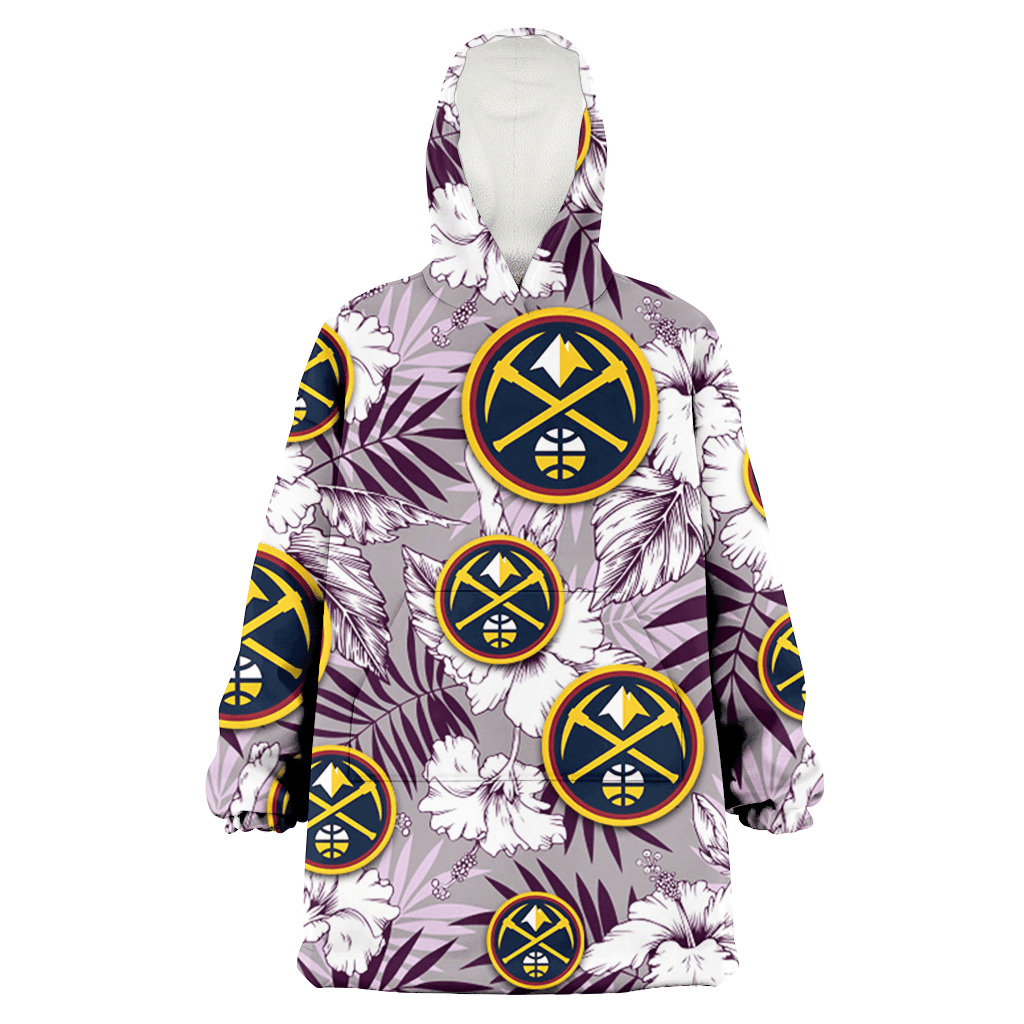 Denver Nuggets White Hibiscus Light Purple Background 3D Printed Hoodie Blanket Snug Hoodie