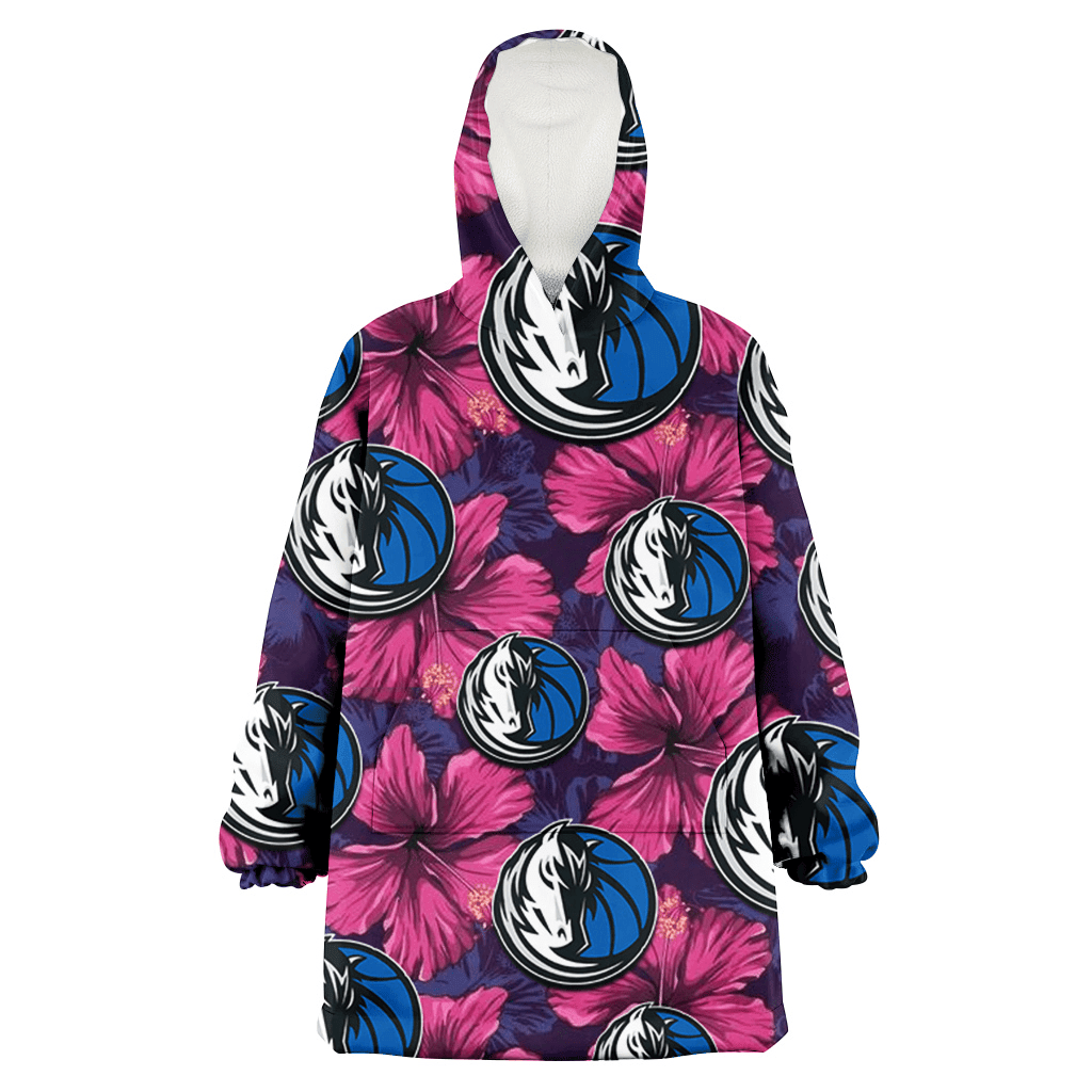 Dallas Mavericks Pink White Hibiscus Misty Rose Background 3D Printed Hoodie Blanket Snug Hoodie