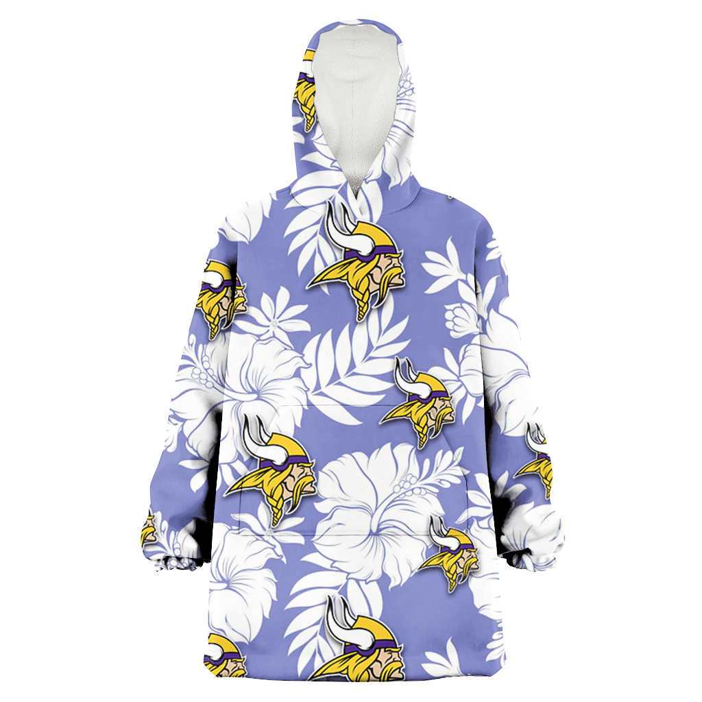 Minnesota Vikings White Hibiscus Pattern Slate Blue Background 3D Printed Hoodie Blanket Snug Hoodie
