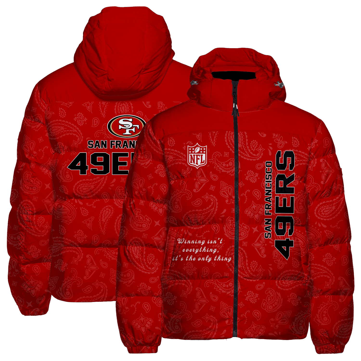 San Francisco 49ers NFL Team Logo Wordmark Paisley Pattern Puffer Jacket