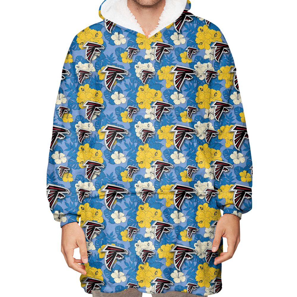 Atlanta Falcons Yellow White Hibiscus Powder Blue Background 3D Printed Hoodie Blanket Snug Hoodie