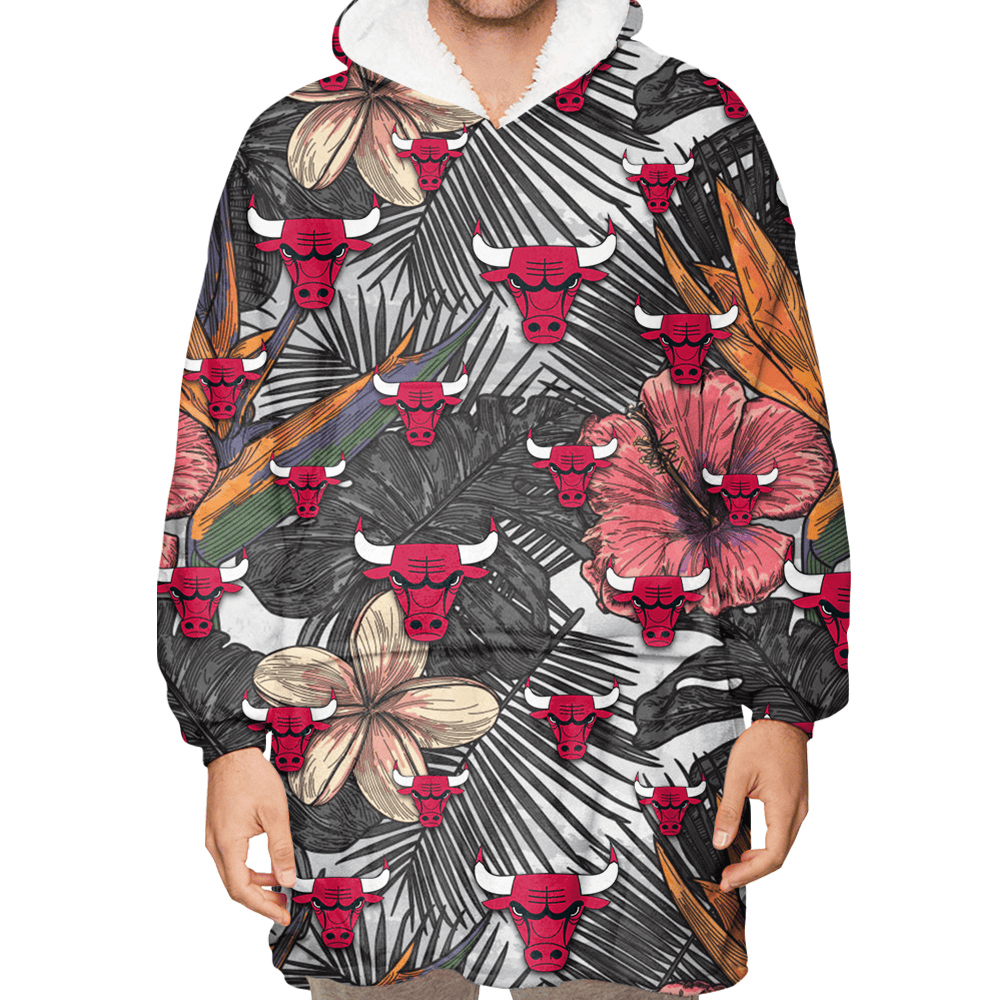 Chicago Bulls Pink Sketch Hibiscus Gray Palm Leaf White Background 3D Printed Hoodie Blanket Snug Hoodie