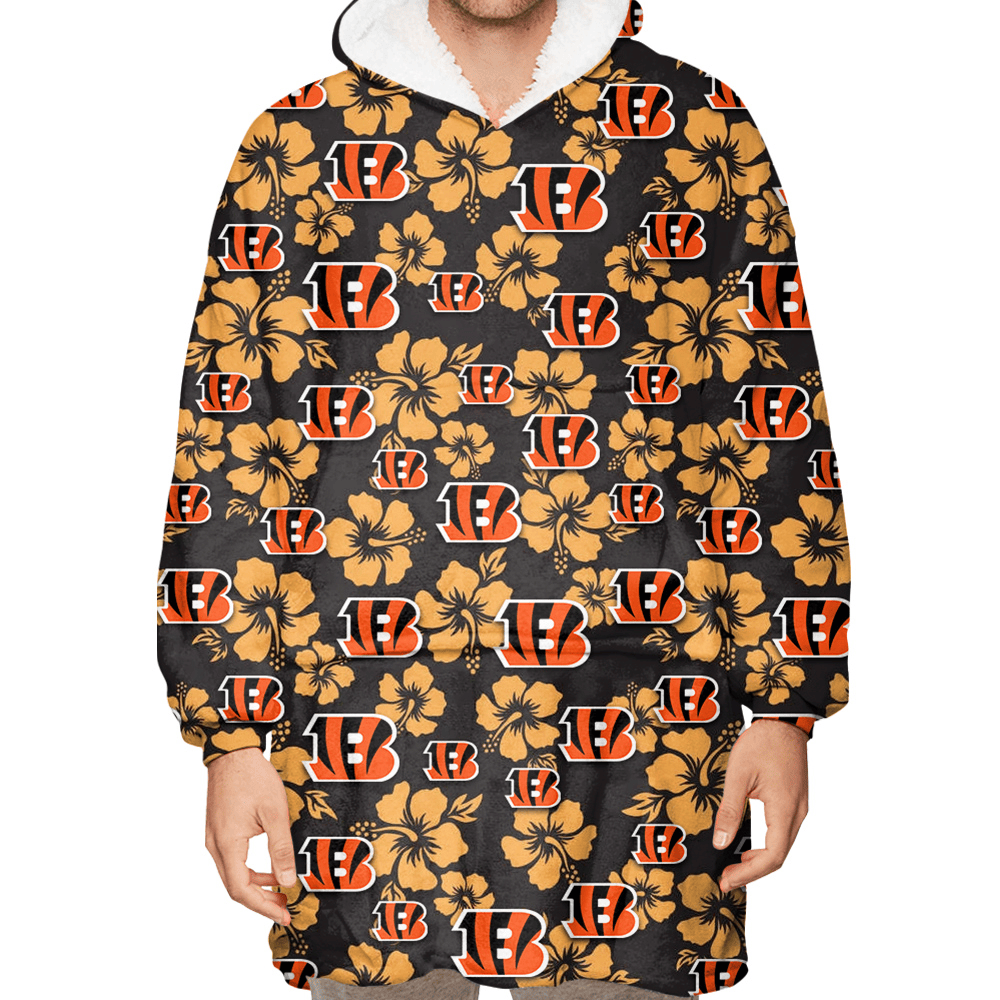 Cincinnati Bengals Tiny Yellow Hibiscus Black Background 3D Printed Hoodie Blanket Snug Hoodie