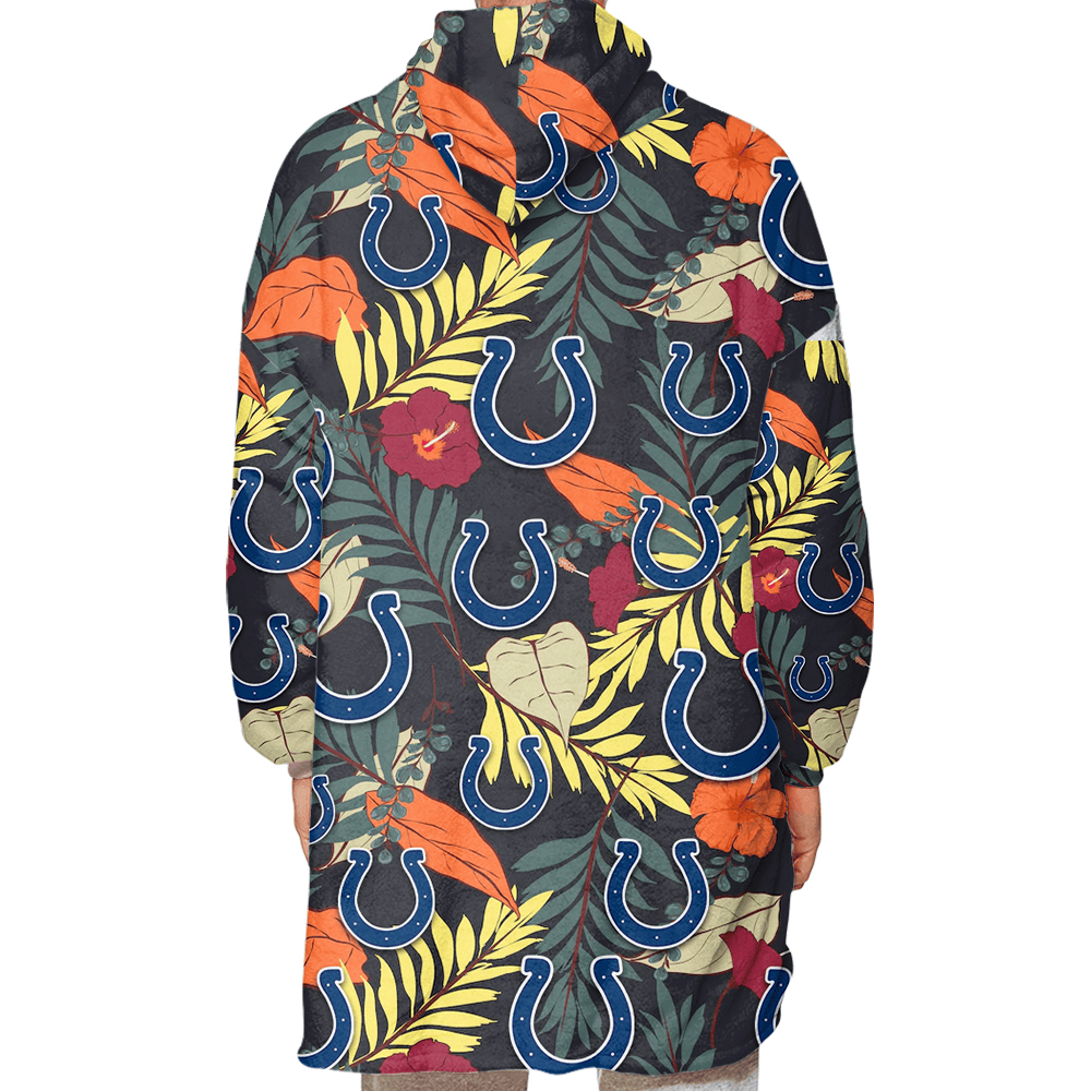 Indianapolis Colts Red And Orange Hibiscus Black Background 3D Printed Hoodie Blanket Snug Hoodie