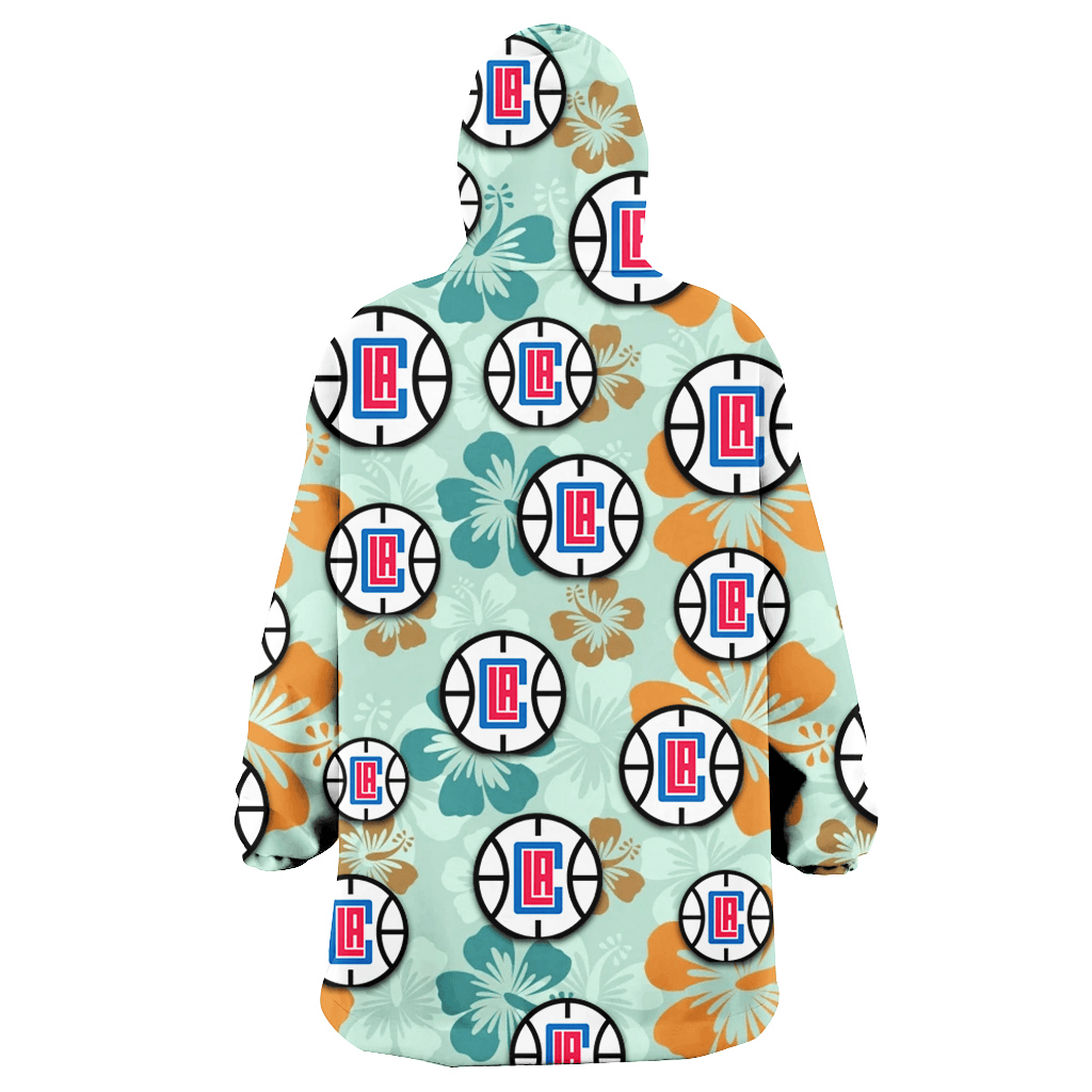 Los Angeles Clippers Orange Green Hibiscus Pale Green Background 3D Printed Hoodie Blanket Snug Hoodie