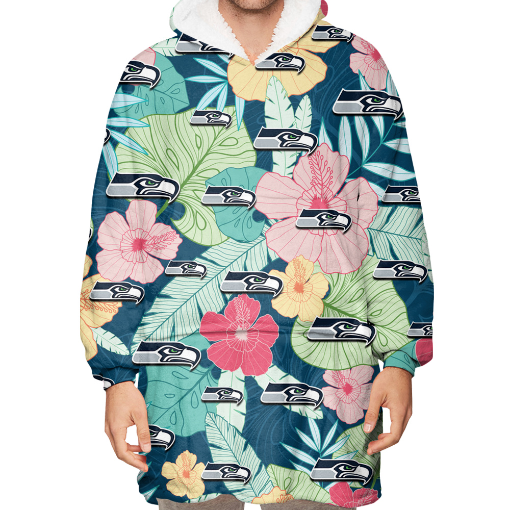 Seattle Seahawks Colorful Sketch Hibiscus Dark Green Background 3D Printed Hoodie Blanket Snug Hoodie