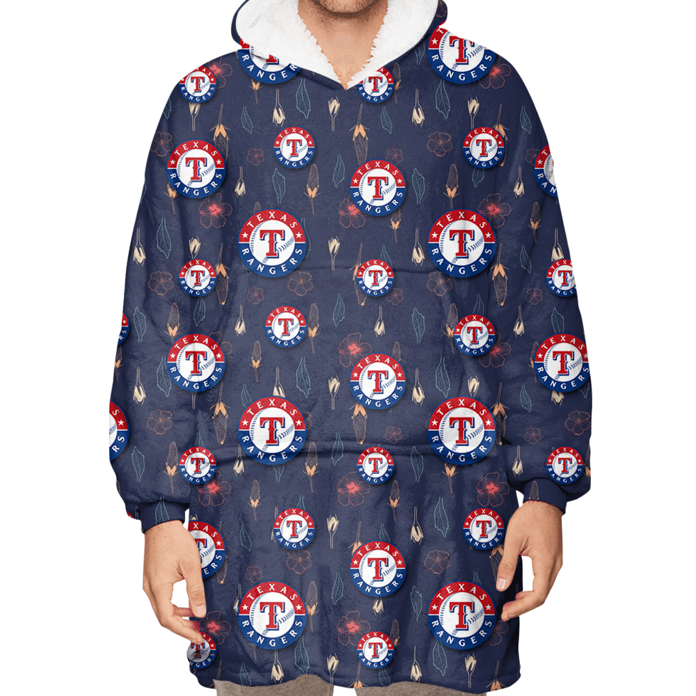 Texas Rangers Small Hibiscus Buds Navy Background 3D Printed Hoodie Blanket Snug Hoodie